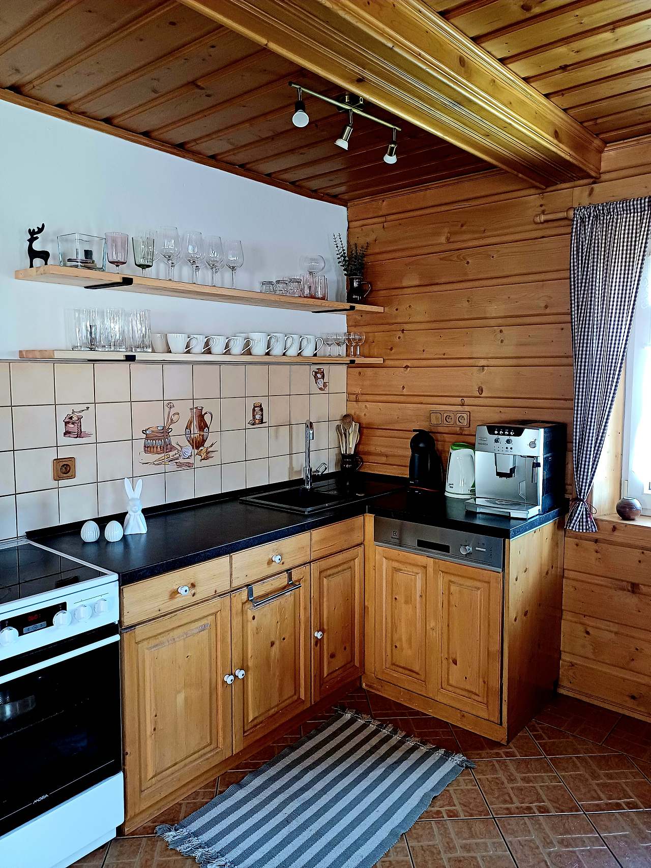 Plně vybavená kuchyně s myčkou, kávovarem, vinotékou a veškerým nádobím je připravena pro Vaše kulinářské nápady.