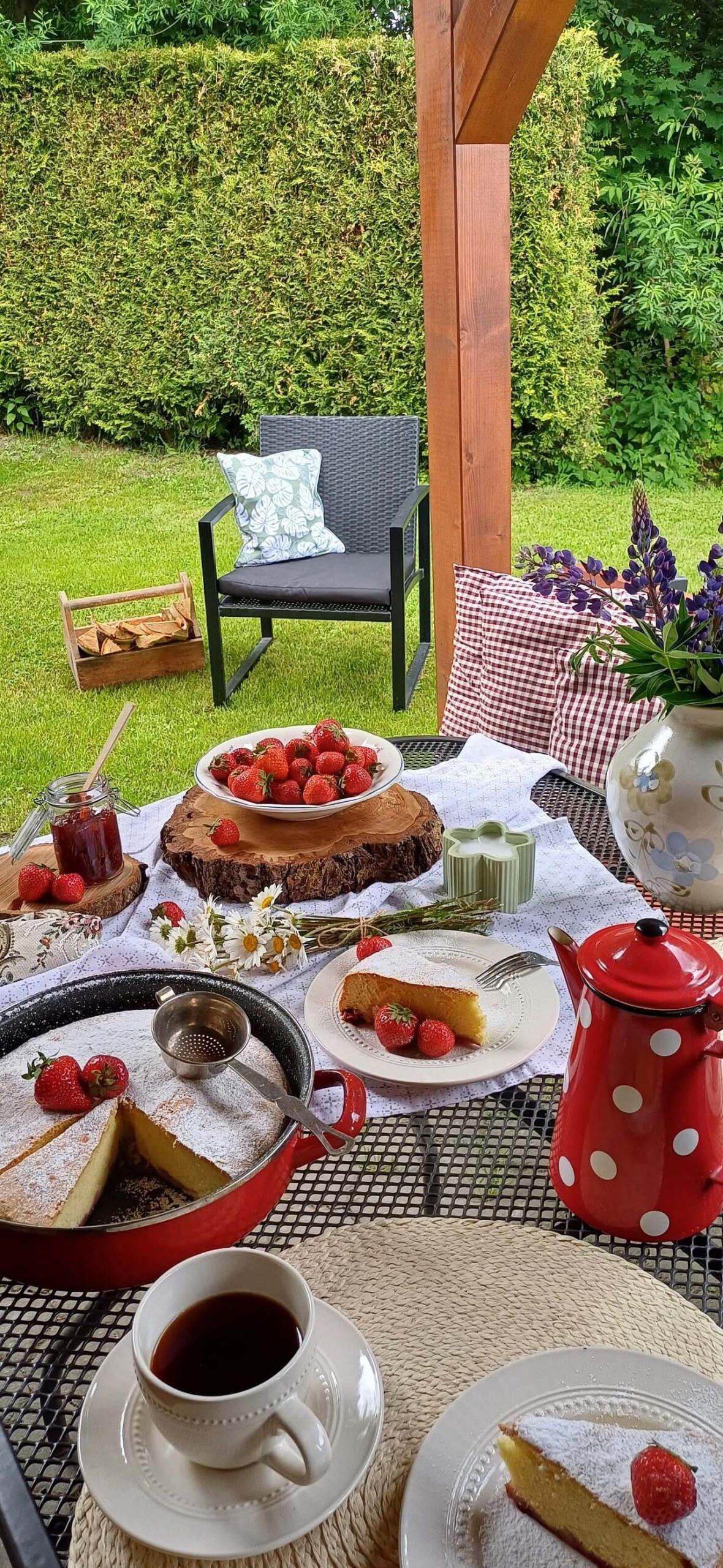 V létě si můžete užít grilování či opékání buřtů pod zastřešenou pergolou s posezením, obklopené zelení.