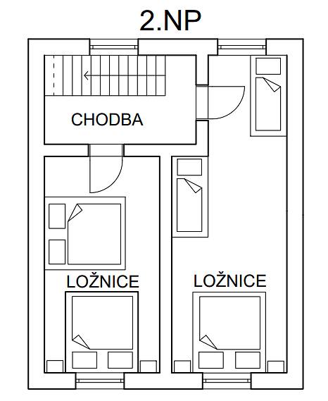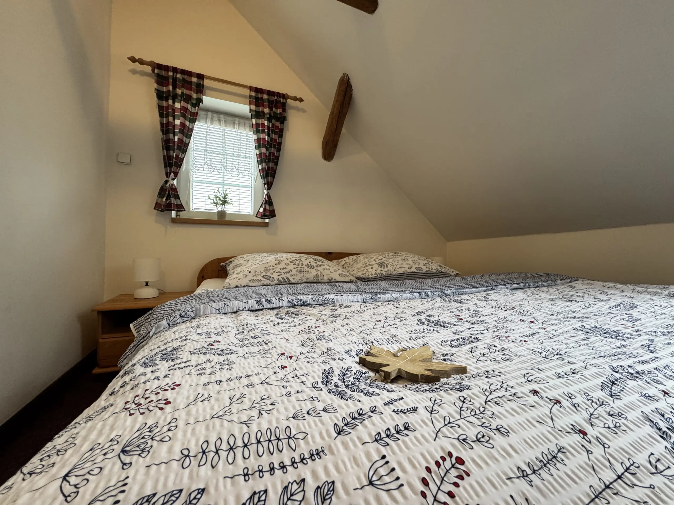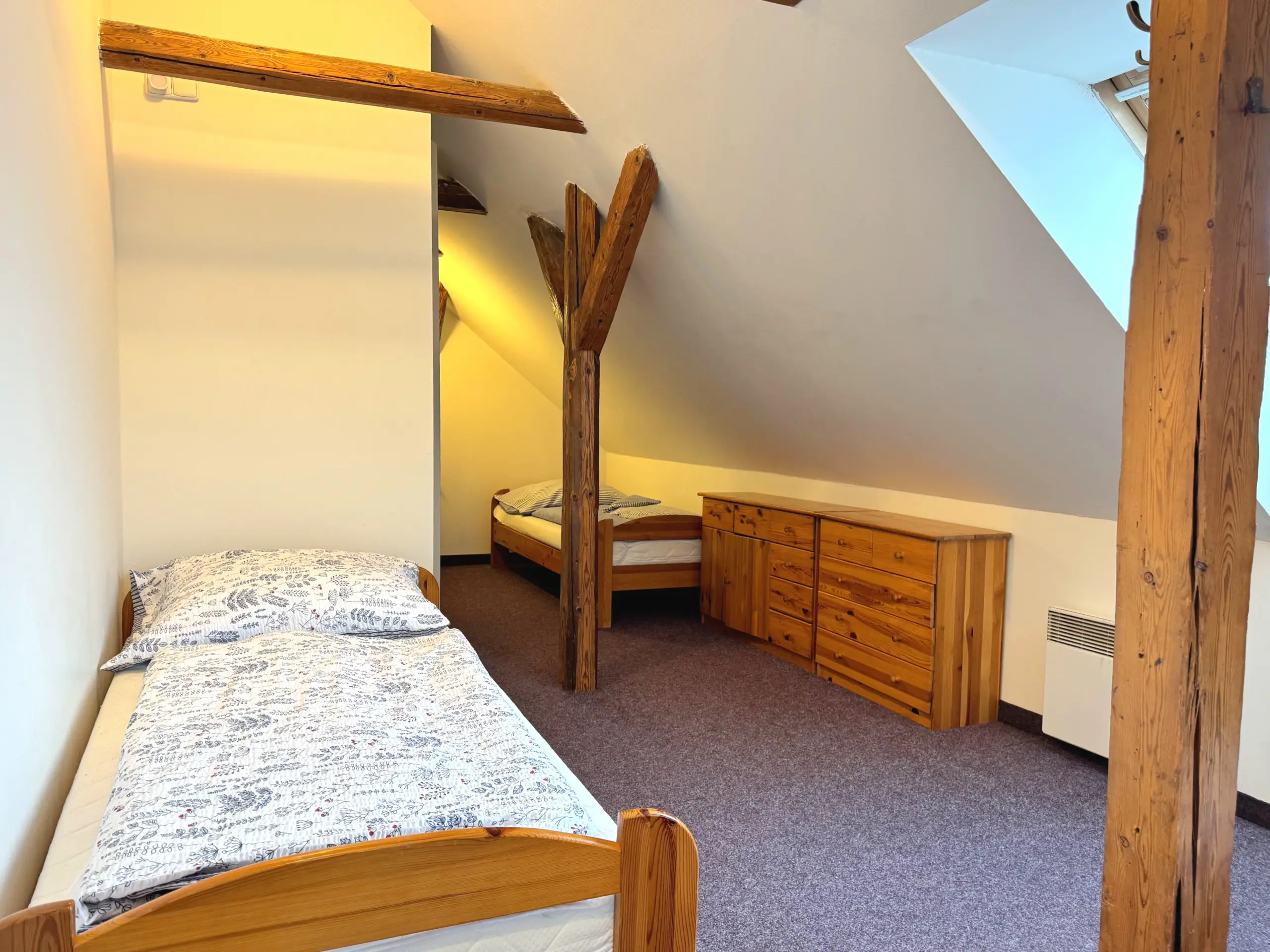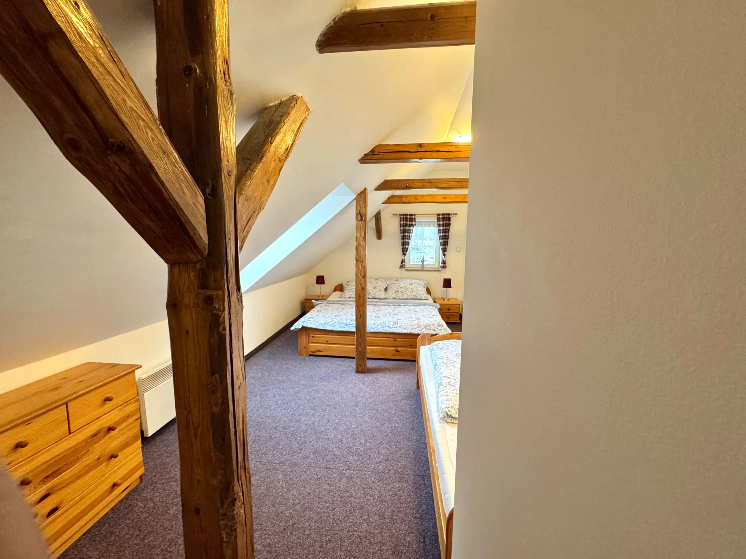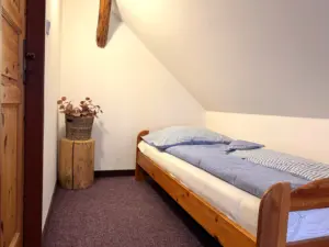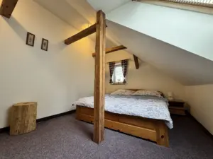 Dvě samostatné podkrovní ložnice nabízejí pohodlí až pro 8 osob.