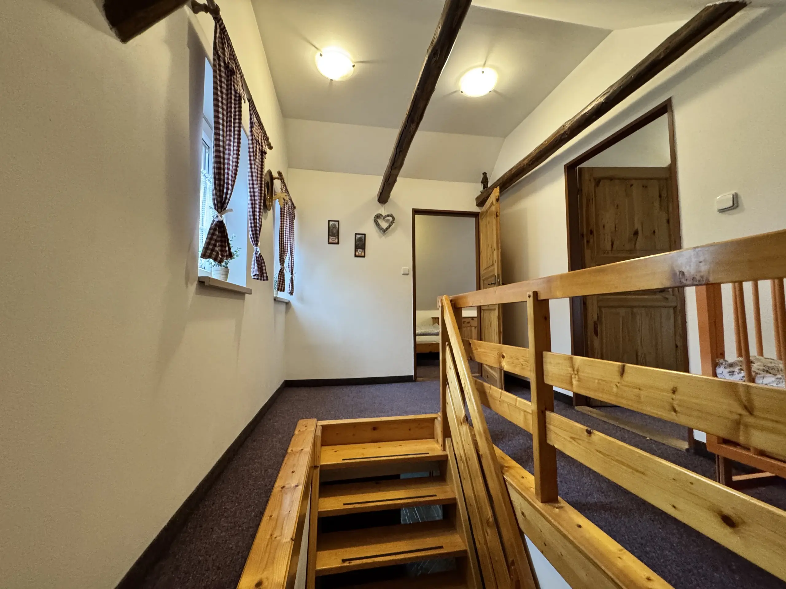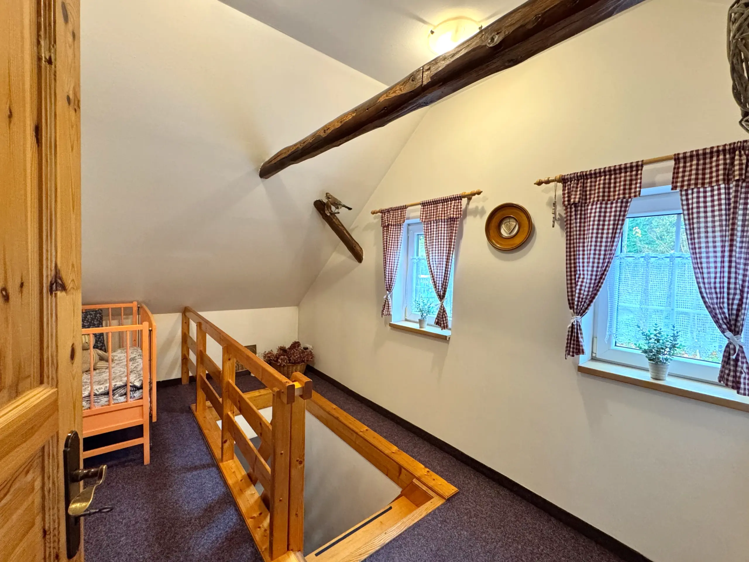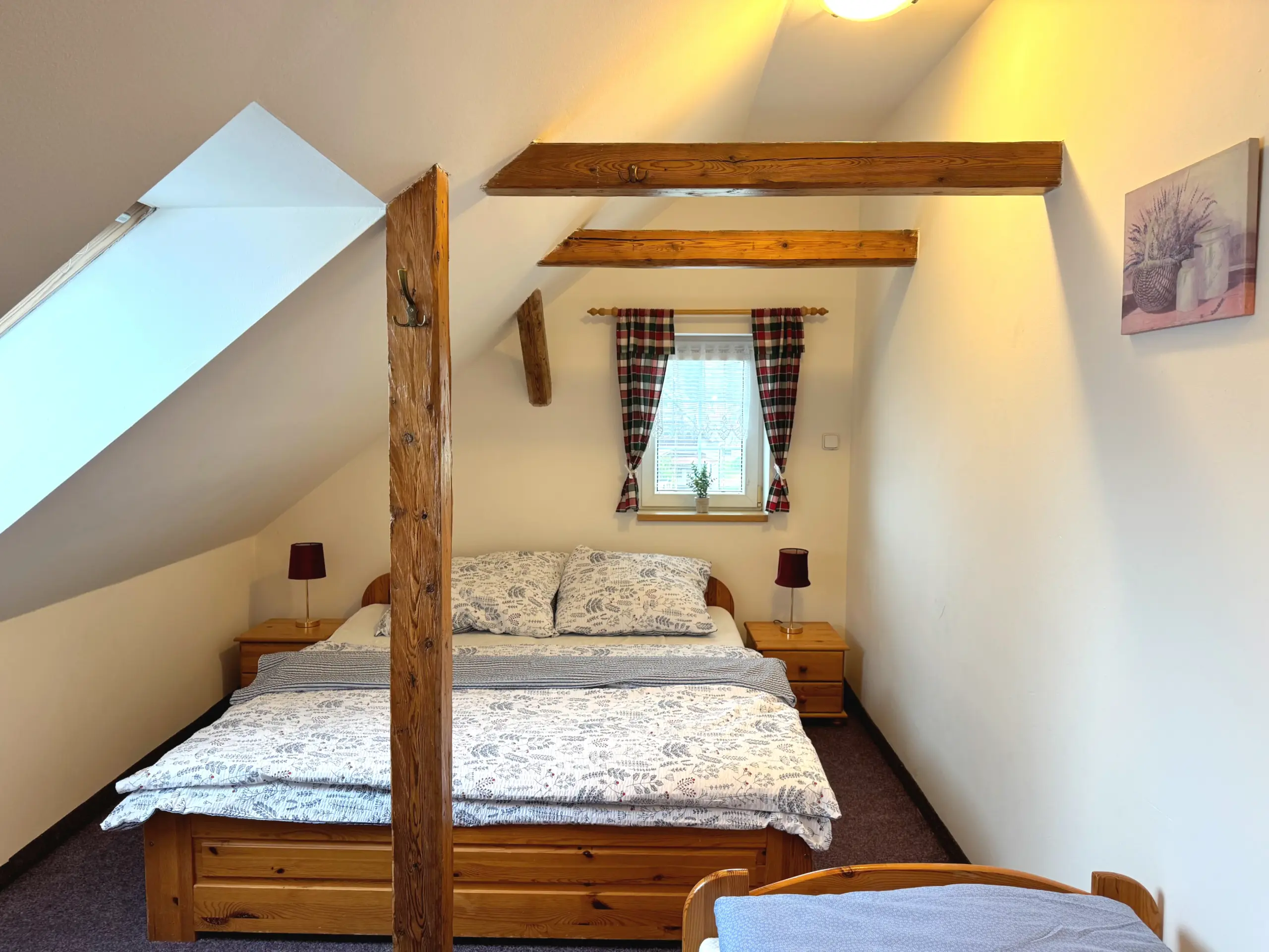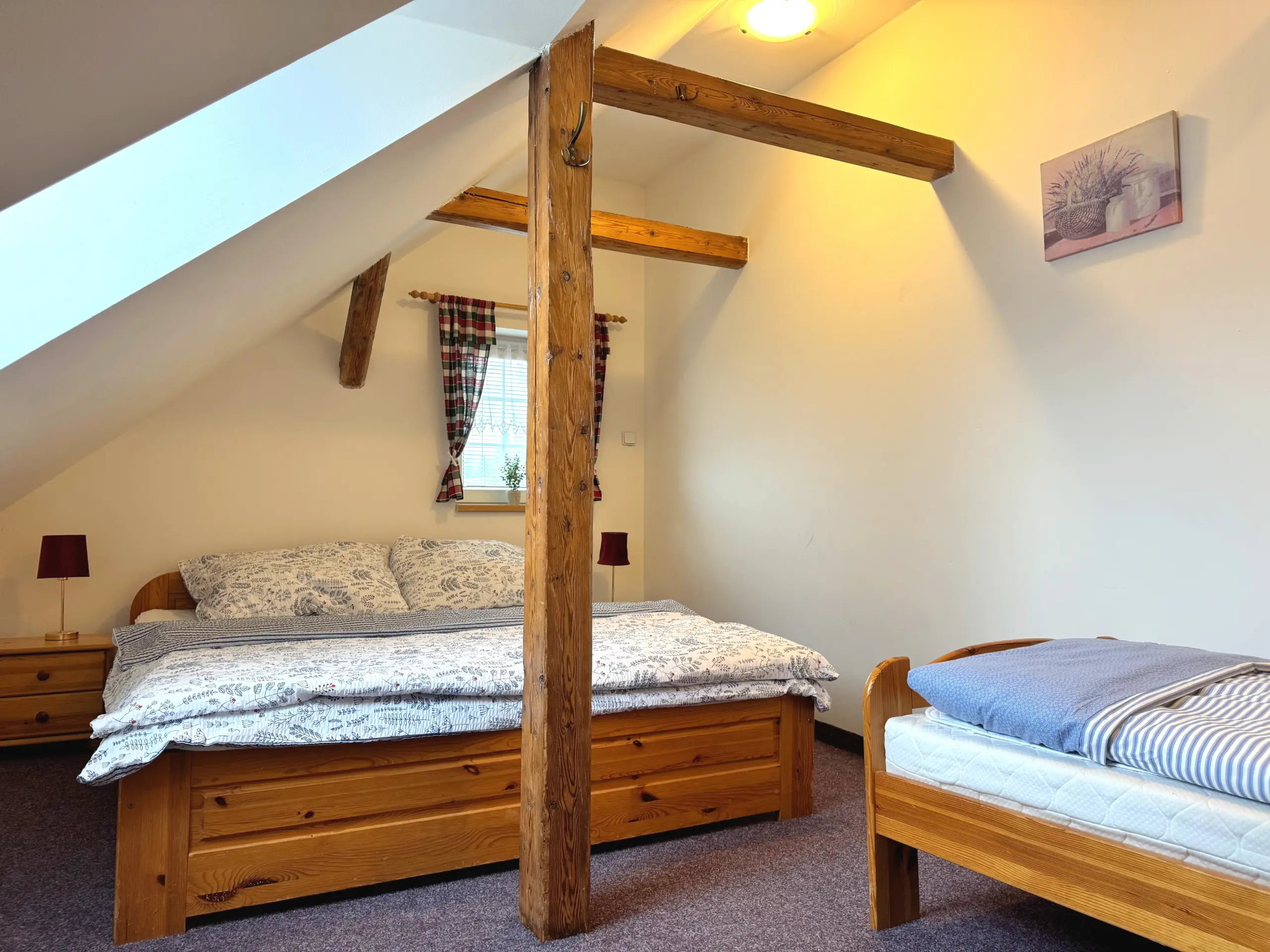 Dvě samostatné podkrovní ložnice nabízejí pohodlí až pro 8 osob.