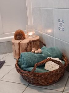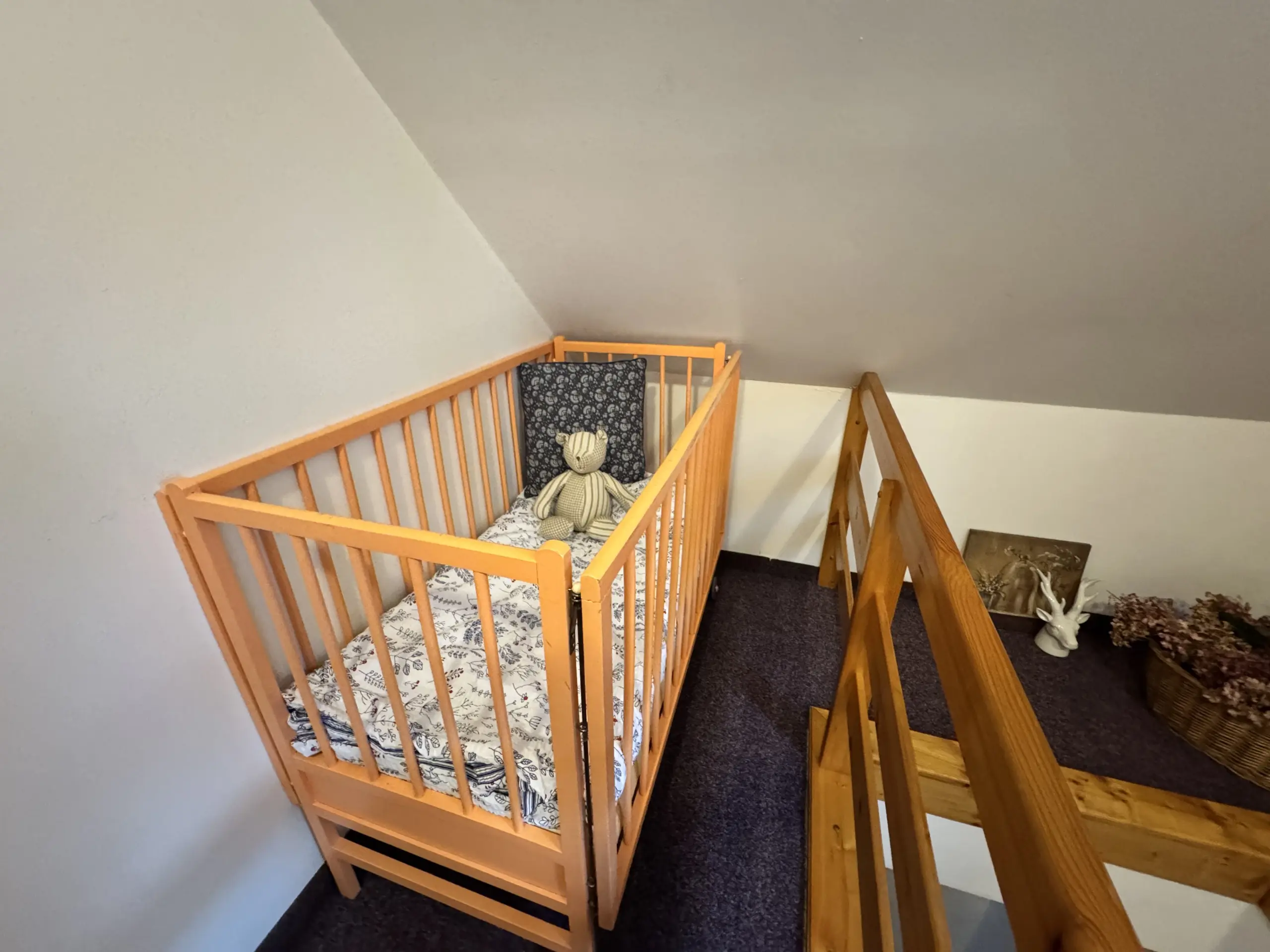 Pro nejmenší hosty je připravena dětská výbava – postýlka, vanička, židlička, krmící lehátko i pár hraček.
