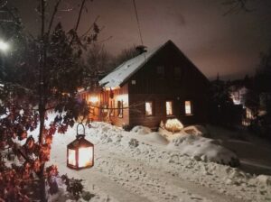 Dýchne na vás radostná rodinná pohoda, jakmile se usadíte v naší roubené chalupě. Roubenka je jako stvořená pro rodinné výlety, deskové hry i večerní pohádky u krbu s šálkem čaje.